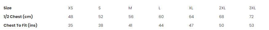 | XS | S | M | L | XL | 2XL | 3XL | 4XL | |