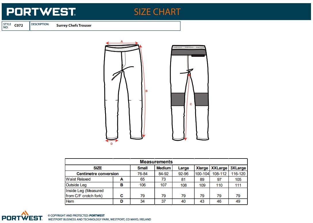 Portwest C072 Chef's MeshAir Pro Surrey Trousers C072