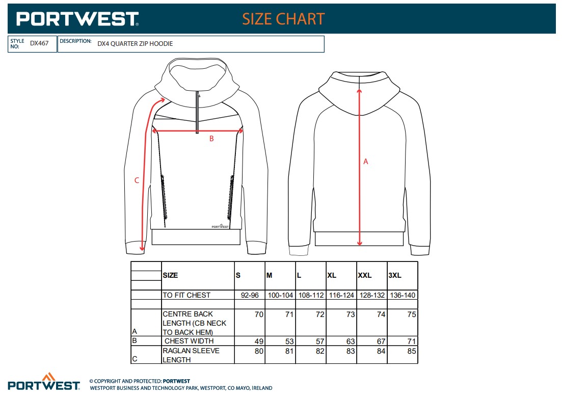 Portwest DX467 DX4 Quarter Zip Hoodie DX467