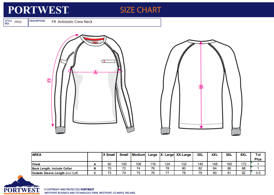 Datasheet - https://documents.portwest.com/datasheet.php?style=FR33&lang=GB&itemcol=FR33NAR&facility=902