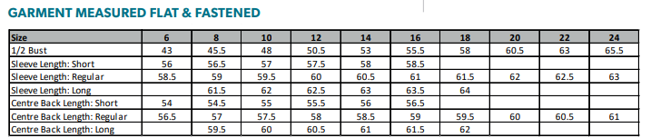 Centre back length at size 12R = 58cm