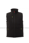 WP 8000 mm H₂O, WVT 5000 g/m² 24h. Men’s padded soft-shell vest, zip closure with "semi-auto lock" metal slider and customised pull. Two side pockets and one breast pocket, closed with a zip. Fluorescent pulls. Two internal pockets, one shaped with zip and one tablet holder pocket closed with Velcro. Adjustable bottom with customised stoppers.